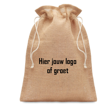 Laat je Sinterklaaspakket opvallen met een jute zakje bedrukt met jouw logo. Zo krijgt het pakket niet alleen een persoonlijke uitstraling, maar straalt het ook professionaliteit uit. Het is een leuke manier om jouw huisstijl subtiel te verwerken in het cadeau.