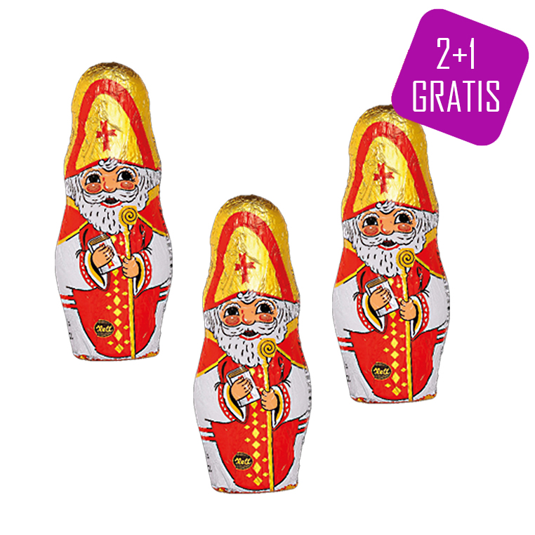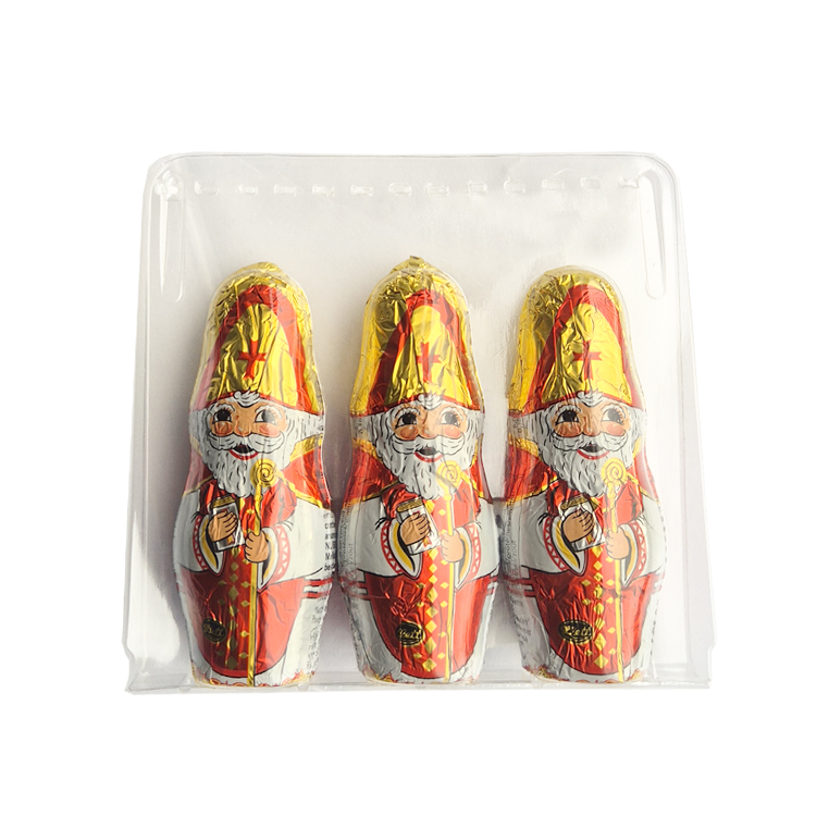 3 Sinterklaaspopjes van 28 gram melkchocolade in een transparante verpakking