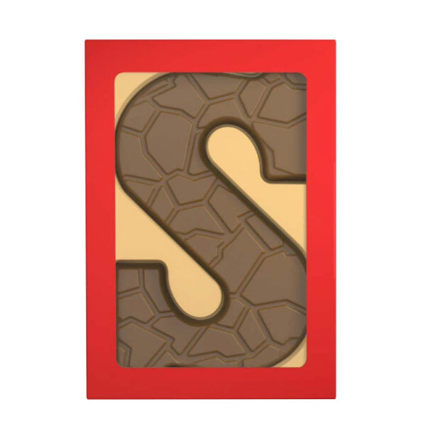 Melk chocoladeletter S met schildpad reliëf , 175 gram In luxe doosje 195 x 140 x 22mm